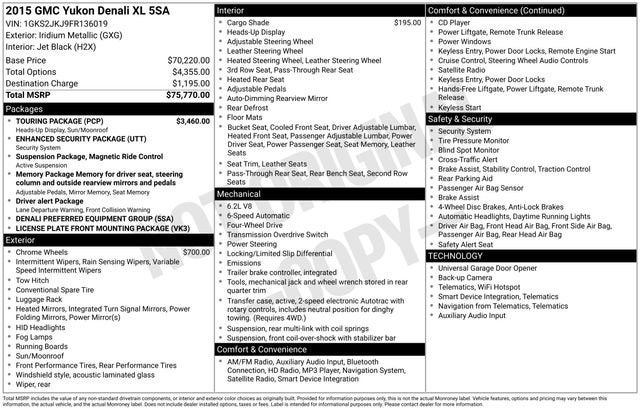 Elevate your driving experience with this exceptional 2015 GMC Yukon XL Denali. This full-size SUV boasts a commanding presence and uncompromising capability, making it the perfect companion for your adventures.Meticulously maintained and with a local trade history, this Yukon XL Denali comes equipped with a host of premium features that will elevate your commute and weekend getaways. Highlights include:- Touring Package with power sunroof, rear seat entertainment system, enhanced security, and head-up display- 20-inch chrome wheels- Dealer-installed cargo shadeAdditionally, the Yukon XL Denali offers a suite of advanced safety and convenience technologies, including:- Driver Alert Package- Enhanced Safety Package- Magnetic Ride Control Suspension Package- Memory Package- Bose Centerpoint Surround Sound audio system- Hands-free power liftgate- Passive entry system with push-button start- Wireless charging- Power second-row bucket seats- Safety alert seat- Integrated trailer brake controllerPowered by a robust 6.2L EcoTec3 V8 engine and equipped with 4-wheel drive, this Yukon XL Denali delivers exceptional performance and capability, whether you're navigating city streets or exploring the great outdoors. With an EPA-estimated 20 MPG on the highway, you can enjoy the journey without compromise.Elevate your driving experience and make a statement with this meticulously maintained 2015 GMC Yukon XL Denali. Visit our showroom today and let us demonstrate how this exceptional SUV can enhance your lifestyle.