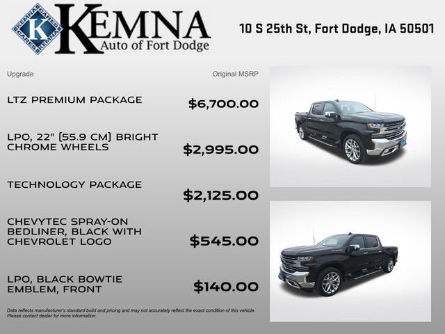 - LTZ PREMIUM PACKAGE: Includes the LTZ Convenience Package, LTZ Convenience Package II, Safety Package, Safety Package II, power sunroof, and 20 polished finish wheels