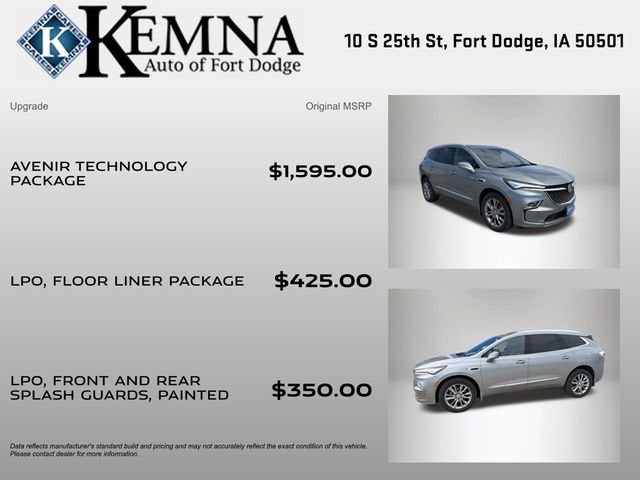 Boasting a commanding presence with its bold, sculpted exterior, the Enclave Avenir commands attention wherever it goes. The sleek, aerodynamic design not only turns heads but also enhances efficiency, delivering an impressive 25 mpg on the highway.